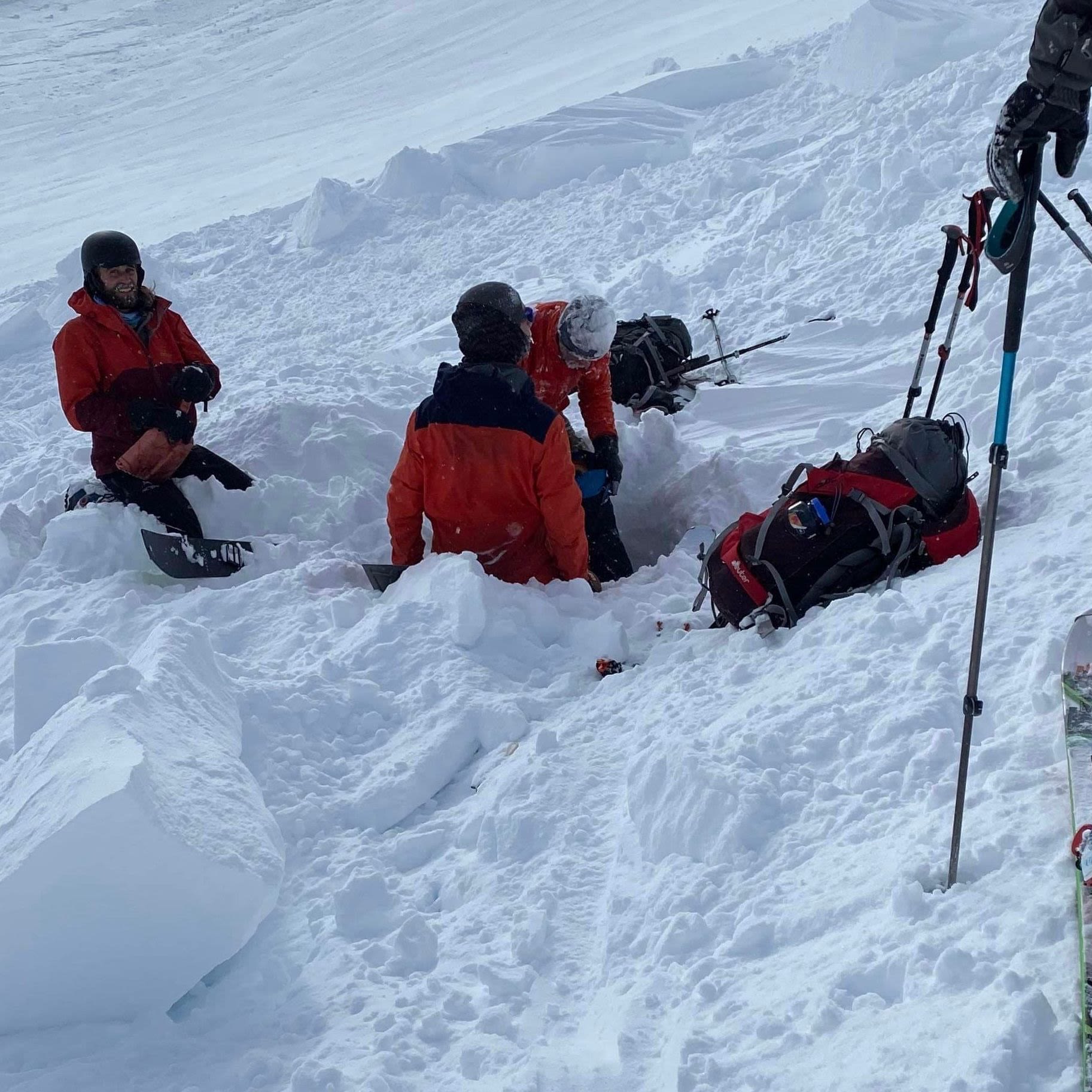 Olthof avoided being fully buried and was freed from the concrete-like snow by his touring partners.