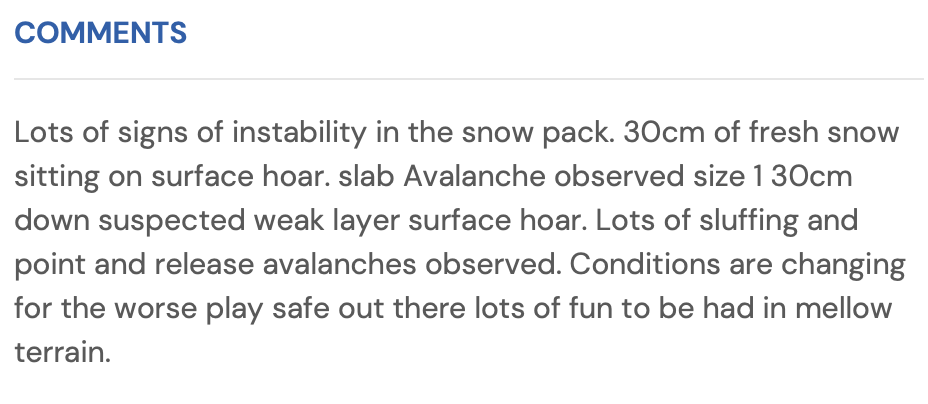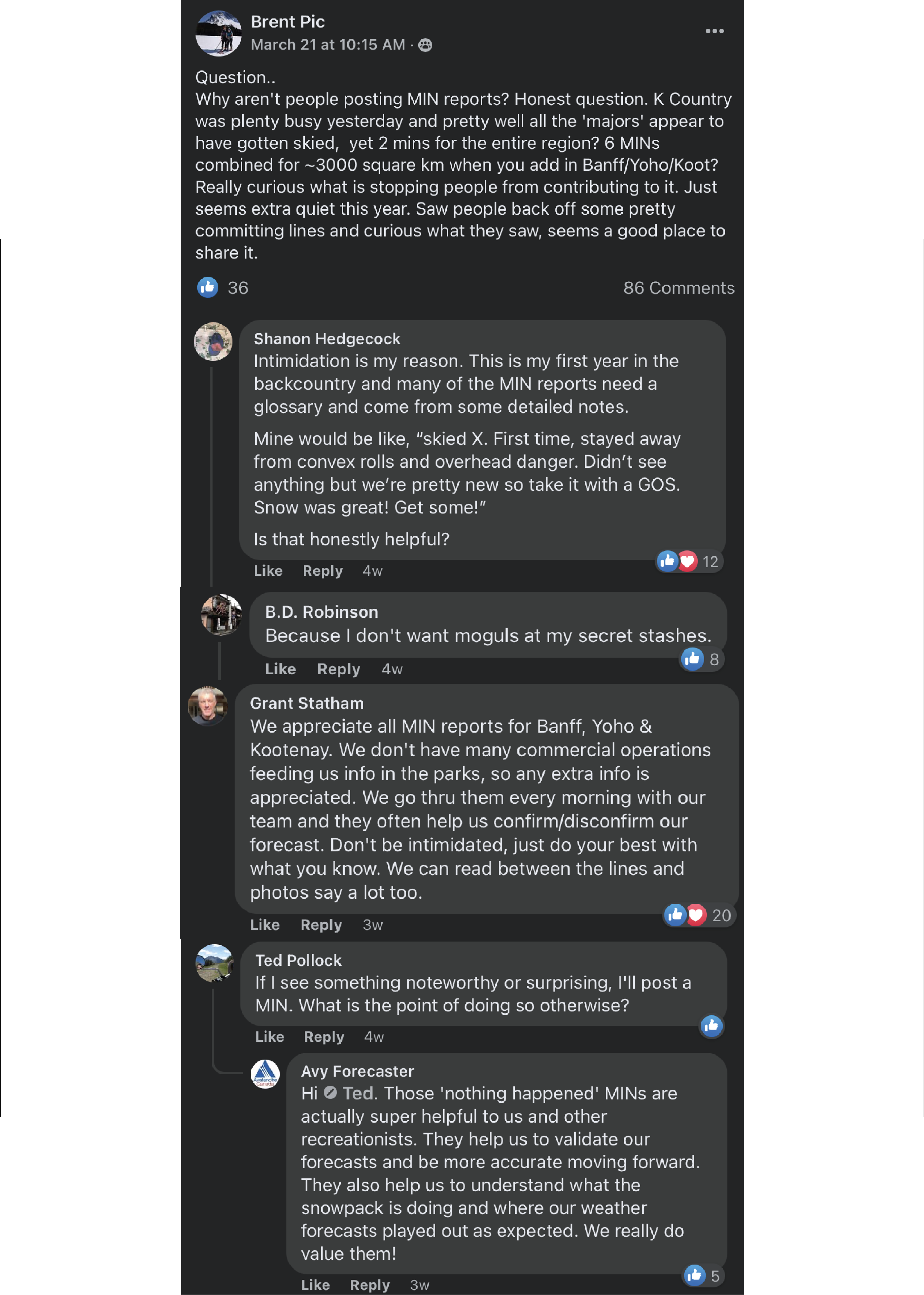 The second aspect is for our forecasters, they will look at MIN reports as well to build their picture of the snowpack and conditions when they write their forecasts."