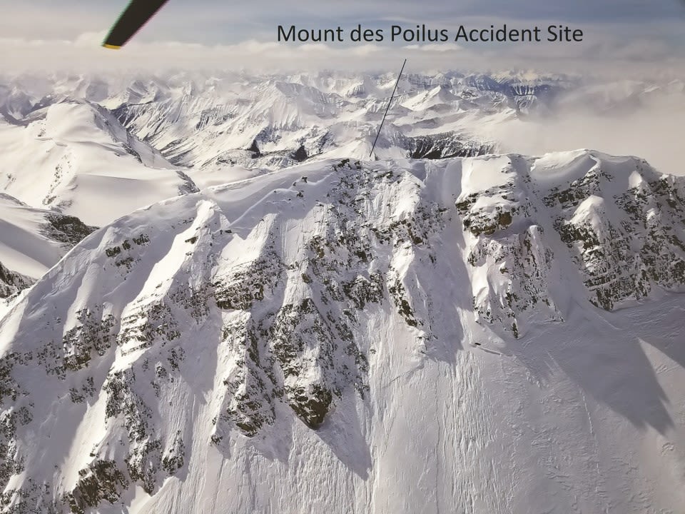 On April 13, a party of five mountaineers were ascending Mont Des Poilus, a 3166 meter peak in the North-West of Little Yoho.